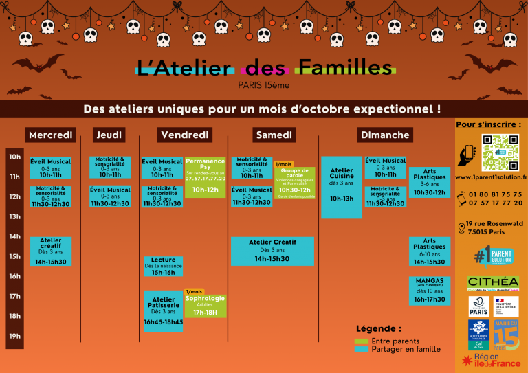 Lieu : L’Atelier des Familles, 19 rue Rosenwald, 75015 PARIS